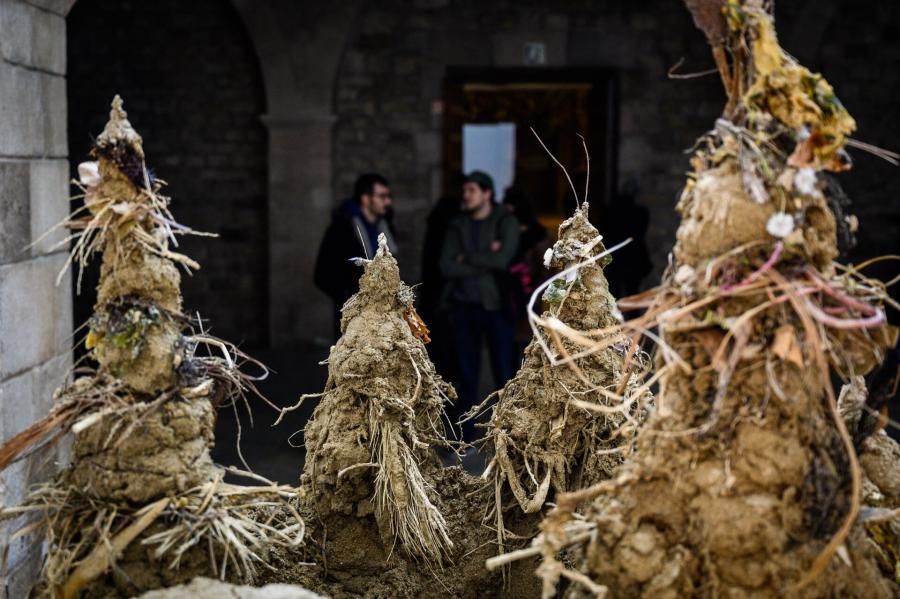 "εξέδρα al voltant de ..." és una situació de trobada i diàleg amb les persones vinculades a les exposicions i projectes de Bcn Producció, en aquest c as, l'artista Martin Llavaneras i la comissària independent Alexandra Laudo que, en qualitat de tutora, l'ha acompanyat durant el procés de treball de Turba Turbo, la seva exposició individual a La Capella. Proper a la idea d'amfitrionatge domèstic, la proposta s'allunya dels models habituals de visita comentada per a erigir-se com una situació més aviat informal i orgànica. En definitiva, una trobada de diumenge on xerrar d'art mentre es fa l'aperitiu.