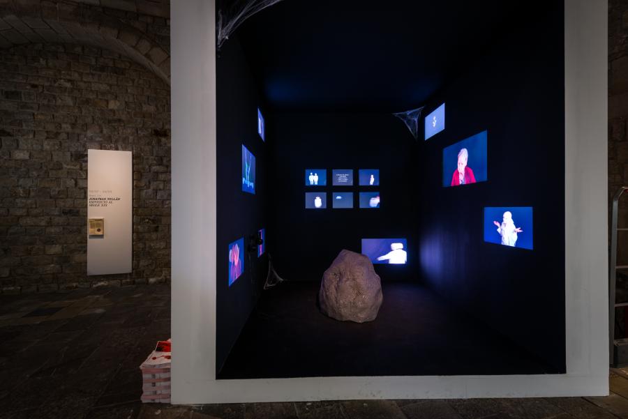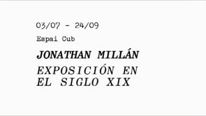 Exposició al segle XIX, la instal·lació que Jonathan Millán presenta a l’Espai Cub, es planteja com un diàleg entre diferents elements en què el temps i la història de l’art es converteixen en el seu eix vertebrador. Diferents personatges que pertanyen a mons i realitats temporals diferents –Miró i Picasso com a símbols de la història de l’art relativament recent; Carlota, la parella de l’artista, com una persona del present; l’àvia, l’únic personatge que ha travessat tots els moments i que, com un nexe envellit, uneix els dos artistes amb Carlota, i,finalment, la mort, sempre present– ens conviden a un viatge en el qual l’estètica del videoart de la dècada del 1980 i el terror (barreja del tren de la bruixa i de les pel·lícules de Bergman) van junts i generen una narrativa que ens porta a reflexionar sobre la construcció de significats i el canvi constant.