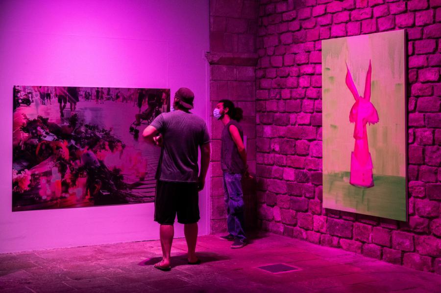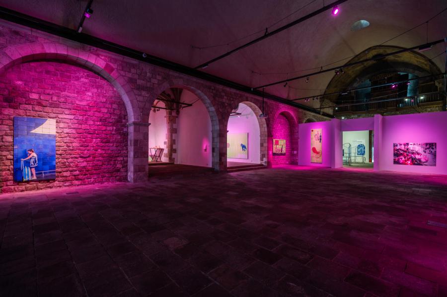 L’exposició Joc d’infants de Lola Lasurt parteix de la retrospectiva Miró. Barcelona 1968-69, la primera mostra d’art contemporani presentada a La Capella. A través d’una nova sèrie de pintures, fotografies, vídeos i ceràmiques, Lasurt aborda l’agitació sociopolítica de finals de la dècada de 1960 tot apropiant-se d’imatges relacionades amb la infantesa publicades a la premsa nacional durant els tres mesos de l’estat d’excepció que es va declarar pocs dies després que acabés l’exposició de Miró. Lasurt relaciona així dues formes de transició: un període d’excepció tant des del punt de vista del desenvolupament polític com personal. El títol remet a l’obra dels Ballets russes de Monte-Carlo Jeux d’enfants, composta per Boris Kochno, amb decorat i vestuari de Miró, i inaugurada al Liceu l’any 1933.