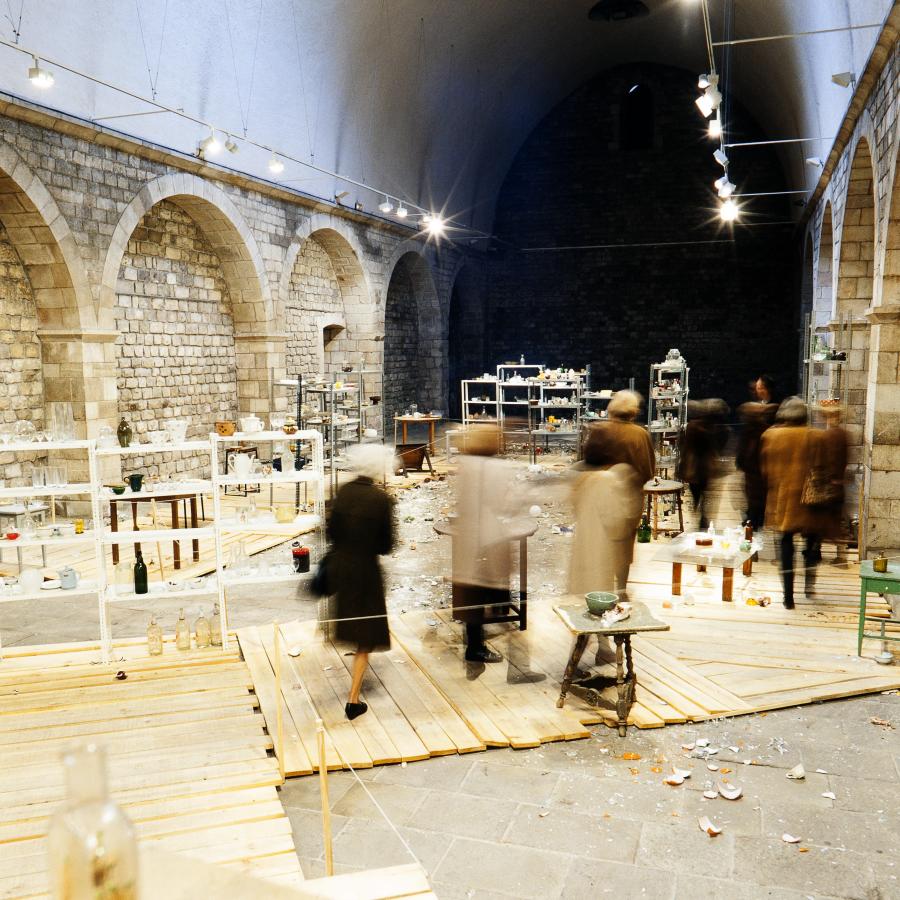 Les dues fotografies que taquen el catàleg insisteixen en aquest poder de la imatge com a finestral que convida a abocar-s’hi. Darrere nostre, sentim el soroll de milers de porticons que s’obren i es tanquen en les dues direccions, grinyols de frontisses i un continu so de passos: laberint de cops secs i petjades lleus.