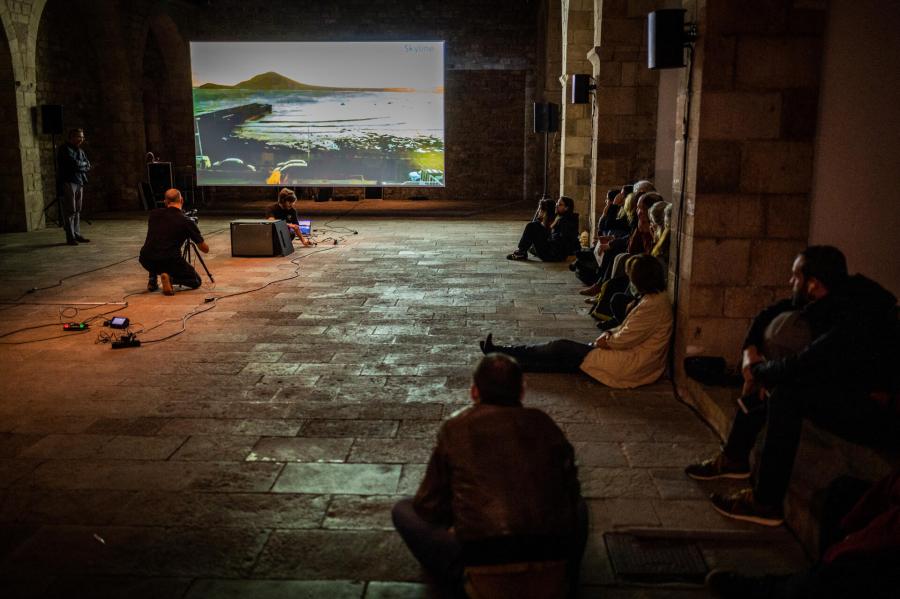 In 1800, Friedrich Hölderlin wrote the line “and only then will words of praise arise, like flowers”. Almost 200 years later, Jennifer contemplates a Bora Bora landscape without qualms. Both are a particular – and extreme – alternative vis-à-vis the relationship between humankind and the world. Whereas Hölderlin wants language to relinquish its status as a medium to become nature, Jennifer is so immersed in the image before her that she unconsciously becomes a part of it. Ara les imatges brollaran com flors o Jennifer in paradise is a live action that presents a rethink of the hackneyed and limited experience of contemplating a landscape. Sunset is seen as one of the most symbolised natural phenomena in Western culture, which has been charged with the task over the years of determining its effects on those observing it. Between Hölderlin’s disquiet and Jennifer’s immersion, Cicuta’s political gesture is to ponder on the question of whether it is still possible today to have experiences that exceed their public ownership.