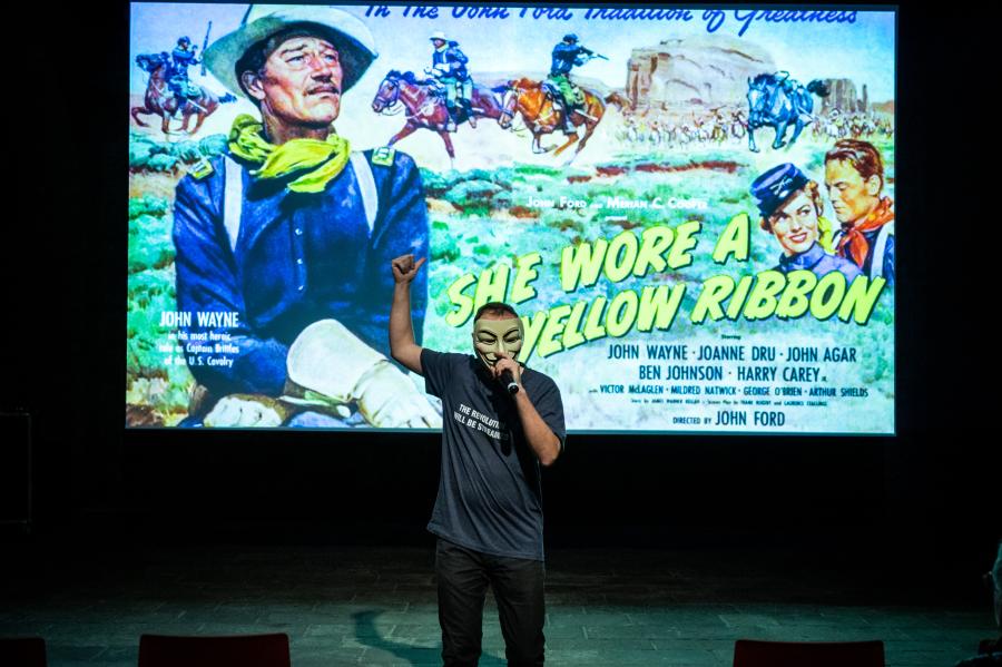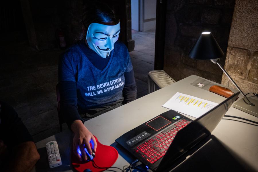 This project seeks to explore the interferences between reality and fiction in the collective construction of the imaginary of revolution, while inviting us to reflect on the use of a series of symbols, gestures or emblems that originated in the popular culture of fiction (particularly in film and literature) and which have been adopted by contemporary social movements as the insignias of their struggles. In addition, it aims to serve as a space for speculating on narrative devices (the roles of the characters and their relationship with power, gestures, discourse, pattern of repetition, etc.) employed by mass-media productions when attempting to represent the ‘nature of revolution’, while at the same time drawing attention to the ways in which consumer goods commodify and trivialise – by means of strategies such as merchandising – that initial recognition of the potential of the symbolic. Consequently, this work creates the conditions for talking about the relationships between reality and fiction in depictions of revolution. In addition, it imagines the virtues and problems of using this type of reference in the advance towards real change.
