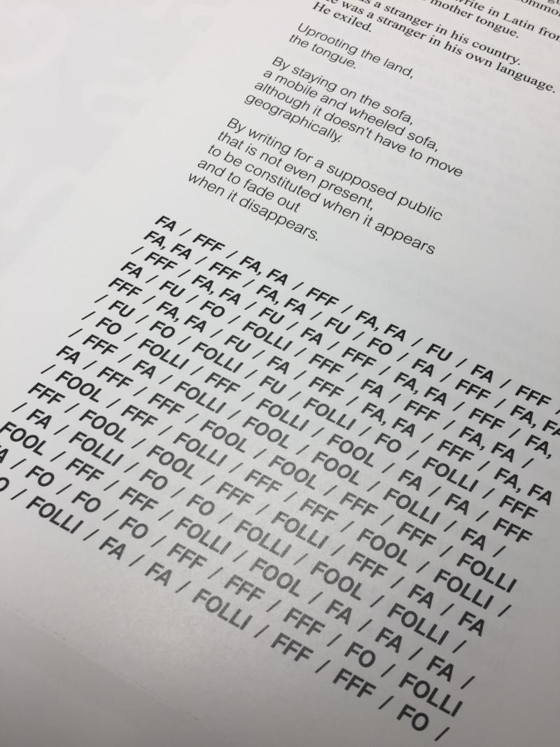 The temporal intensity of the work by Claudia Pagès causes everything she makes to evade stable and pre-established formats. In Talk Trouble, the exhibition resisted being an exhibition; her “Talk Trouble readings” went beyond performance. At the same time, her publication distances itself from the concept of a catalogue and instead becomes a textual script of Talk Trouble.