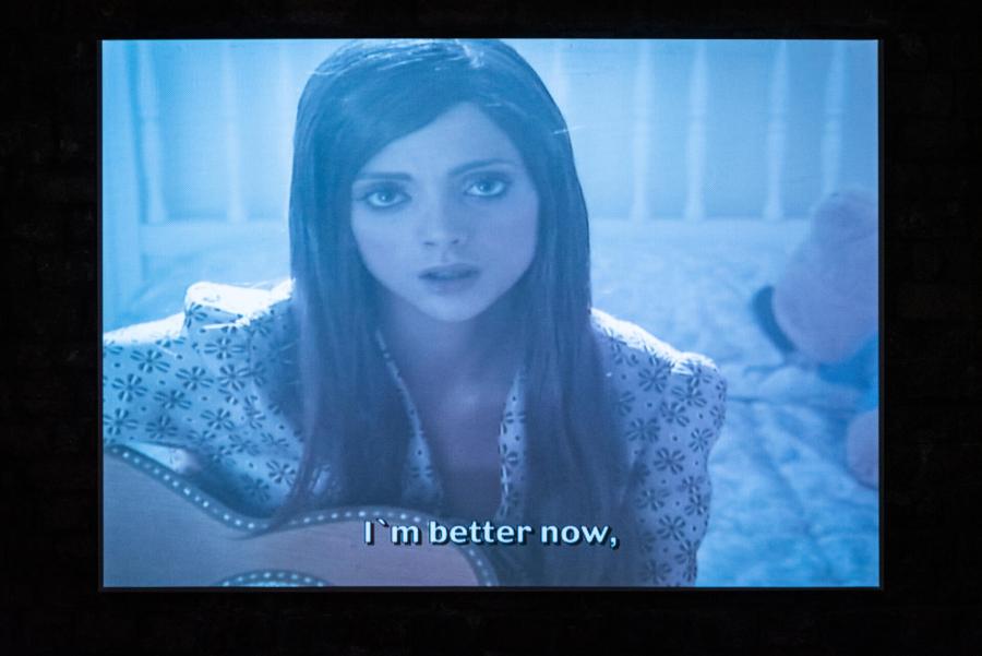 A similar language-related tension is what spurs the production of David Bestué (1980, Barcelona). His work negotiates the irresolvable tension between body and discourse, verb and matter, poetry and sculpture, architecture and performance. Included in the exhibition are examples from the collection of posters that Bestué produced specifically for La Capella after the publication of his book Historia de la Fuerza (2017). This series presents an oblique guide via the major milestones of public works engineering in Spain. Meanwhile, Un Mystique determinado (2003) by Carles Congost (Olot, 1970) offers a caustic and scathing parody of the romantic figure of the genius. Based on songs by the Barcelona-based electropop group called Astrud, Congost’s videos take ownership of the codes of a rock opera to bring some of the key questions of aesthetic philosophy up to date around issues like the meaning of “creation”, the function of art and the social perception of the artist.