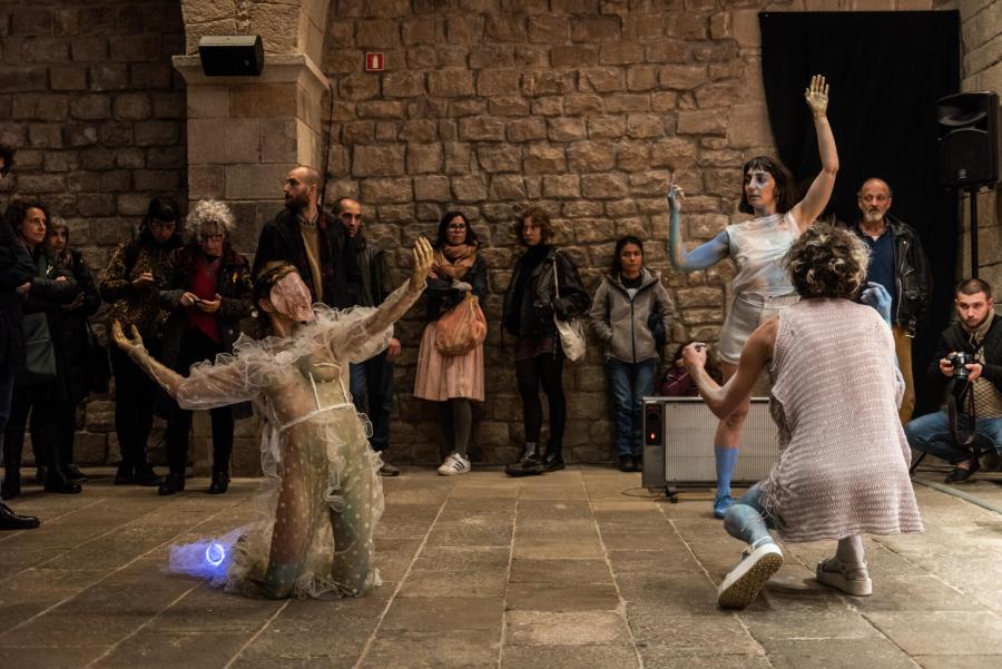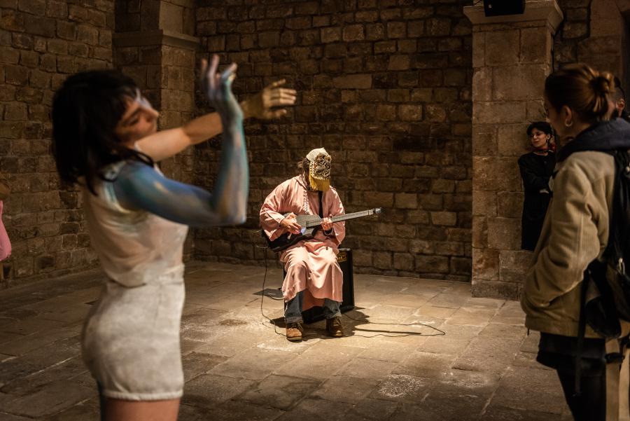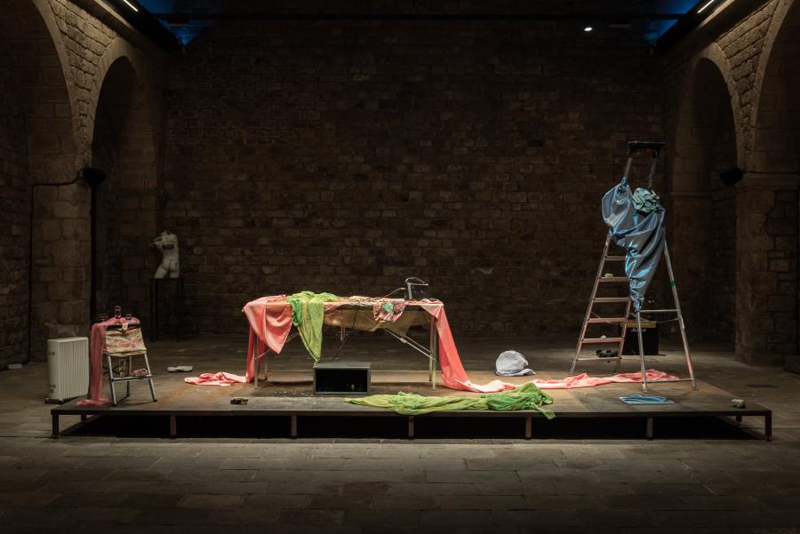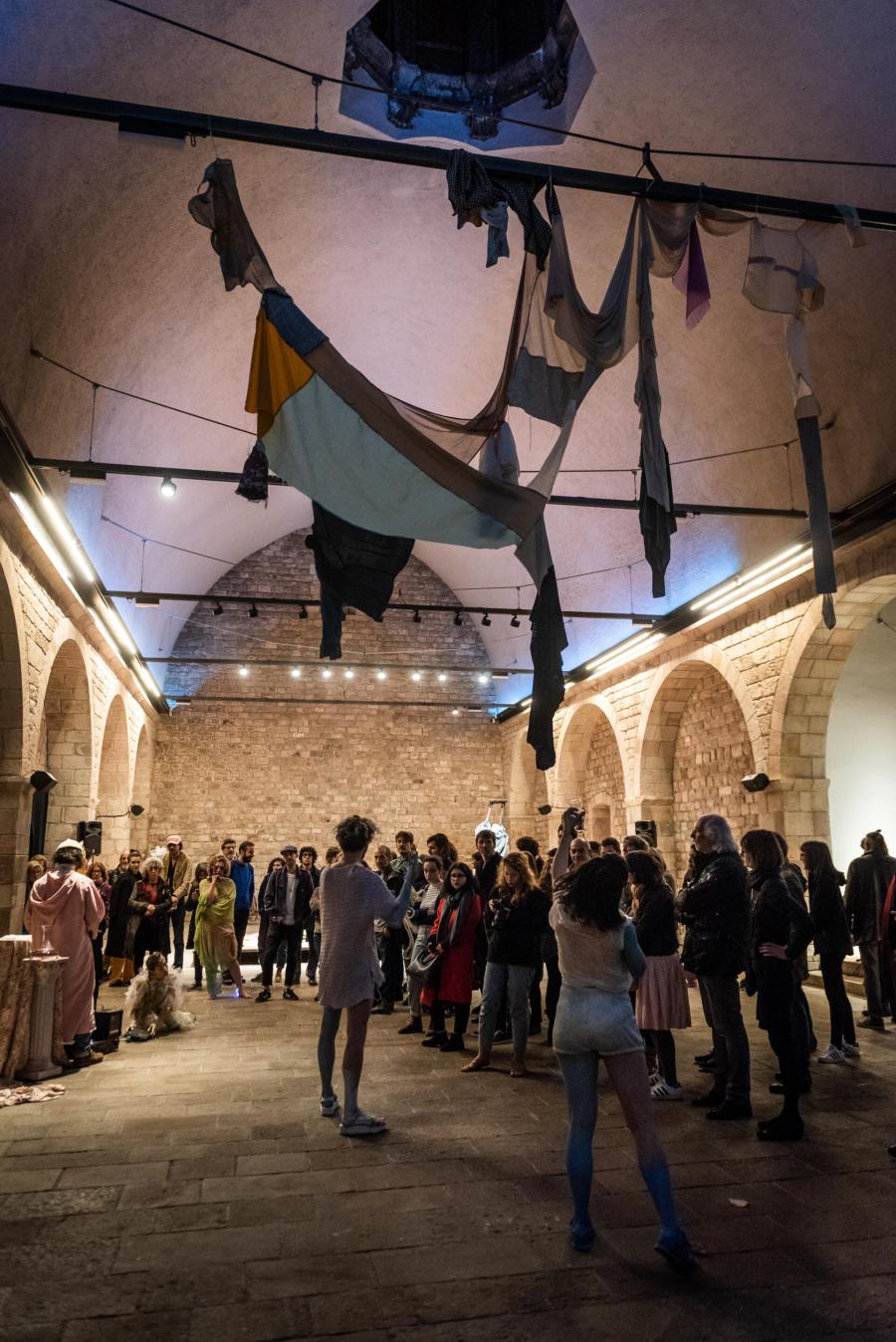 Les Brontë is an artistic duo based in Cadaqués, the home of the divine Dalí, and consists of the dancer Victoria Macarte and the textile and visual artist Rosa Tharrats. Les Brontë met in 2011 while working on Albert Serra’s film The Story of My Death, in which the light of Casanova meets the darkness of Dracula. They filled the hours off set in the châteaux and castles of France and Transylvania by playing with the period costumes and mounting small performances to entertain the actors waiting to go on. This provided the inspiration to continue with a collaborative artistic project, which they dubbed Les Brontë.