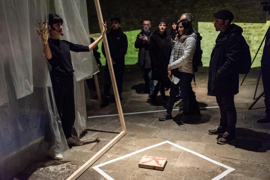 The Reading Room is concerned with the unrestricted exploration of other forms of collective reading. The third session of this project presents an action situated between the boundaries of the open essay, micro-theatre, performance and sculptural installation, while also studying the idea of writing plays for the theatre as a medium. Through the reappropriation of Miran Božovič’s essay “The Omniscient Body”, which contains a wealth of narrative material, surrealist brushstrokes, the philosophy of materialism, veiled misogyny and indoctrination, and in which the theme of the acousmatic voice in Diderot’s first novel, Les bijoux indiscrets, and in Pythagorean legends is examined as the possible origin of the term, what is proposed is a deconstruction of meaning expressed through the action of two women drummers who embody two or three characters, a sculpture presented as an actor and a complete alteration of the idea of place that involves what is audible as representation and as fiction.