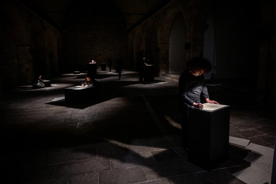 Como no creyente, el recuerdo es para Nieves Correa lo único que perdura, y es en su práctica artística donde ese recuerdo se “encarna” para convertir el cuerpo en vehículo de memoria. De este modo, la performance no es un acto mental, sino un acto físico en el que el cuerpo acomete un proceso y se somete a un esfuerzo y a un trabajo: la tensión de cumplir ese trabajo y recordar desde el cuerpo. La performance transita así desde la estética hacia la ética como “acto de historia” y reparación del pasado. Los bombardeos aéreos de Barcelona en los días 16, 17 y 18 de marzo de 1938 efectuados por la Aviación Legionaria italiana desde sus bases en Mallorca fueron posiblemente los más terribles de la historia de la ciudad, causando entre 880 y 1.300 muertos y entre 1.500 y 2.000 heridos en la población civil. Las cifras oficiales de la Generalitat de Catalunya publicadas el día 26 de marzo señalaron 875 muertos (de ellos, 118 niños), pero en los días siguientes fueron registradas 49 personas más, lo que da un total de 924 víctimas mortales. […]. Es considerado uno de los primeros bombardeos de saturación de la historia y el segundo que más muertos causó en la guerra española en una sola de las incursiones tras el de Guernica.