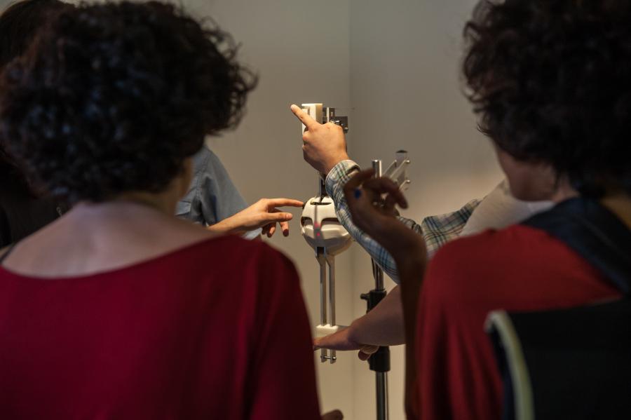 Aparato de medición de la voluntad según el índice de Scheuermann genera una ficción científica que demuestra, en su lógica, cómo se construyen determinadas nociones de verdad. Su sustento teórico se basa en la revisitación de la frenología, implementada en los últimos treinta años por el Instituto Höglund de Frenología de Estocolmo (HFIS) para establecer los parámetros que correlacionan cuerpo y mente más allá de la forma craneal, y en la enfermedad de Scheuermann, patente en la adolescencia y manifiesta en la pubertad como un debilitamiento y deformación entre las cervicales que genera una cifosis pronunciada. Los orígenes de la enfermedad se desconocen y su tratamiento implica el uso de un corsé ortopédico o, incluso, requiere cirugía. El proyecto recoge un estudio reciente y detallado de la enfermedad, pasando a reconocerla como una condición. Los casos considerados patológicos eran ejemplos extremos de algo común en todos los humanos: la manifestación física de la voluntad.