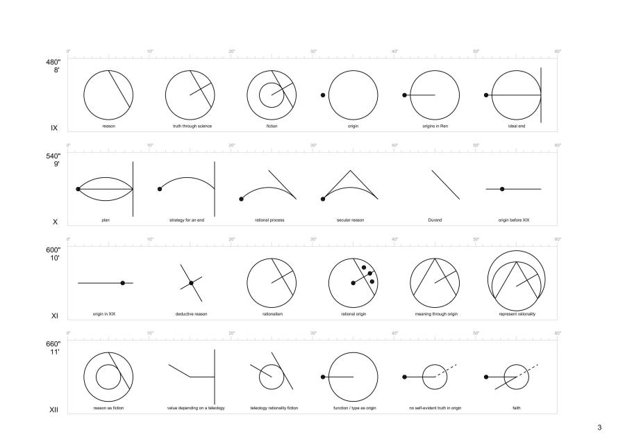 Pol Esteve propone pasar del lenguaje al objeto mediante la dicotomía entre “construcción mental” y “construcción física” presente en toda la historia de la arquitectura. Pol Esteve ha escogido el ensayo de Peter Eisenman precisamente porque parte de una “estructura” muy difusa que habla de la arquitectura misma como texto. El proceso de análisis y síntesis (tanto del significado como de la morfología) para trasladar el escrito a un dispositivo arquitectónico produce la emergencia de sistemas profundos del pensamiento. De este modo, el artista establece un sistema de trabajo analítico intuitivo (aunque de metodología estricta) que se basa en la esquematización gráfica. Por otro lado, el transvase del texto a una construcción sensitiva implica el paso inverso al salto lingüístico que tuvo lugar en el arte y la arquitectura durante la segunda mitad del siglo xx.