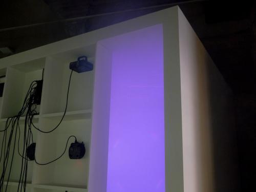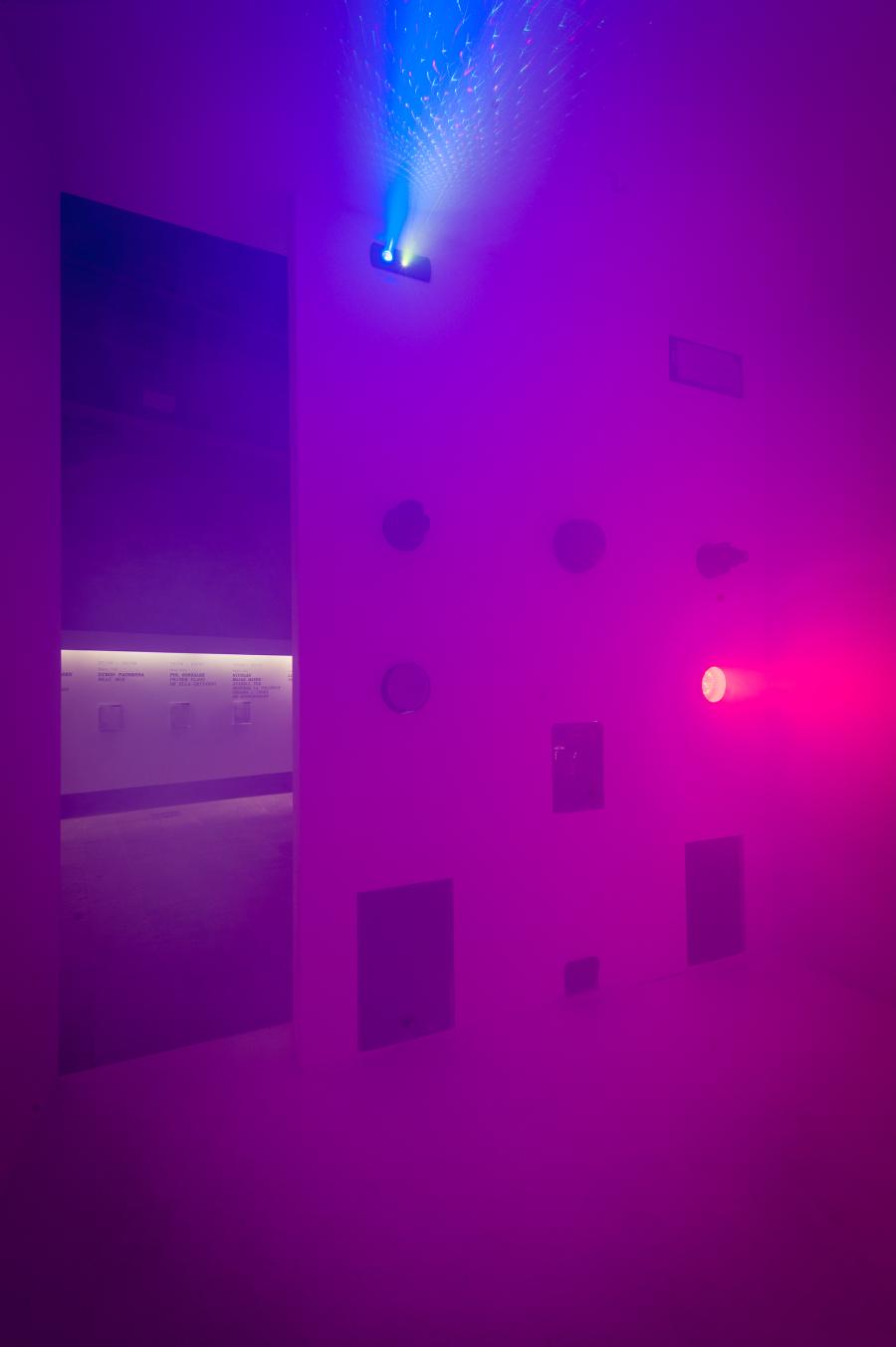 Para implementar la composición de este proyecto en el Espai Cub, el artista emplea los recursos tecnológicos propios de las discotecas (focos, aparatos de efectos especiales, altavoces, etc.) y coloca estas pequeñas máquinas en una especie de pared-estante a la vista del espectador. La visión externa de estos gadgets o dispositivos remite al uso que se ha hecho de la tecnología en el discurso arquitectónico del siglo pasado, a la vez que nos invita a entrar en el Espai Cub, donde su funcionamiento hace que el espacio adopte una estética disco/caja negra.