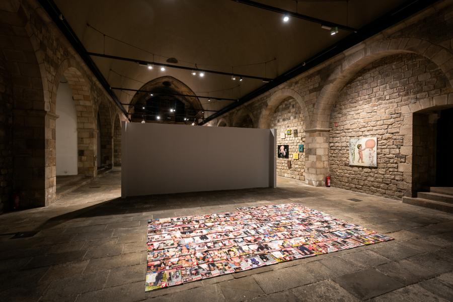 De entrada, el inicio surge de la biografía del lugar. Pese a que antes ya se habían organizado exposiciones de arte contemporáneo, fue en 1994 cuando La Capella inició su programación regular dedicada a las artes visuales. Gustavo Marrone (Buenos Aires, 1962) formó parte de la primera de sus exposiciones. No obstante, junto con el inicio histórico y objetivo, las obras de Marrone hacen entrar en escena una de las máximas subjetividades del trabajo en arte: el pensamiento cosmogónico, la potencia del imaginario propio. Tensando el arco temporal de la exposición, se presentan, por un lado, una selección de pinturas y dibujos de los años noventa, y por otro, una propuesta reciente en la que conviven revistas de época y una confesión magnificada: “la evidencia pudo con todas las especulaciones estéticas”. Como una premonición, esta obra parece advertirnos de que lo evidente, lo contingente, lo inmediato, el cuerpo y los afectos rivalizan con lo histórico y lo especulativo a la hora de explorar, exponer y relacionar prácticas artísticas. Carnalidad y textualidad conjugadas.