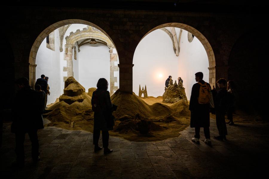 Nada te turbe. Todo se pasa. Martin Llavaneras concibe la arquitectura de La Capella como una escultura hecha de terroncitos de arena. Esta resonancia, la marea consumiendo un castillo, es el ancla de Turba Turbo, un proyecto que explora la circulación de la arena como materia desfigurada, latente y potencialmente gótica.