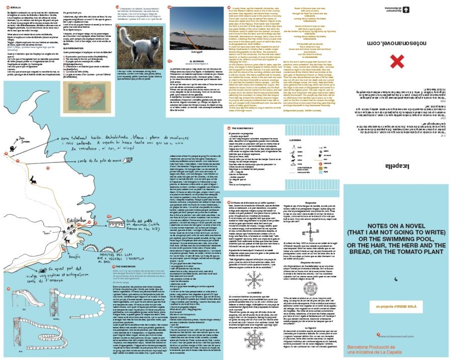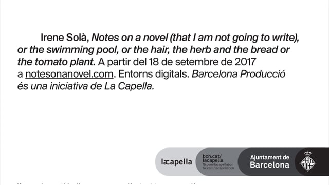 Notes on a novel (that I am not going to write) or the swimming pool, or the hair, the herb and the bread or the tomato plant es el proyecto de Irene Solà en el marco de Barcelona Producció para entornos digitales.